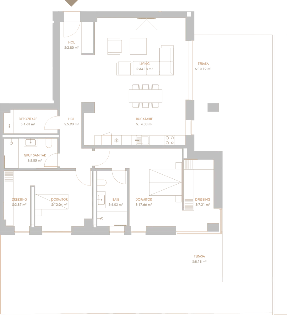 Apartamentele depășesc 110 m² utili și au tavane înalte, oferindu-ți libertatea să-ți transformi spațiul exact cum îți dorești.
