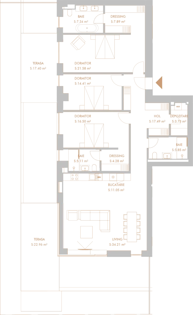 Apartamentele depășesc 110 m² utili și au tavane înalte, oferindu-ți libertatea să-ți transformi spațiul exact cum îți dorești.