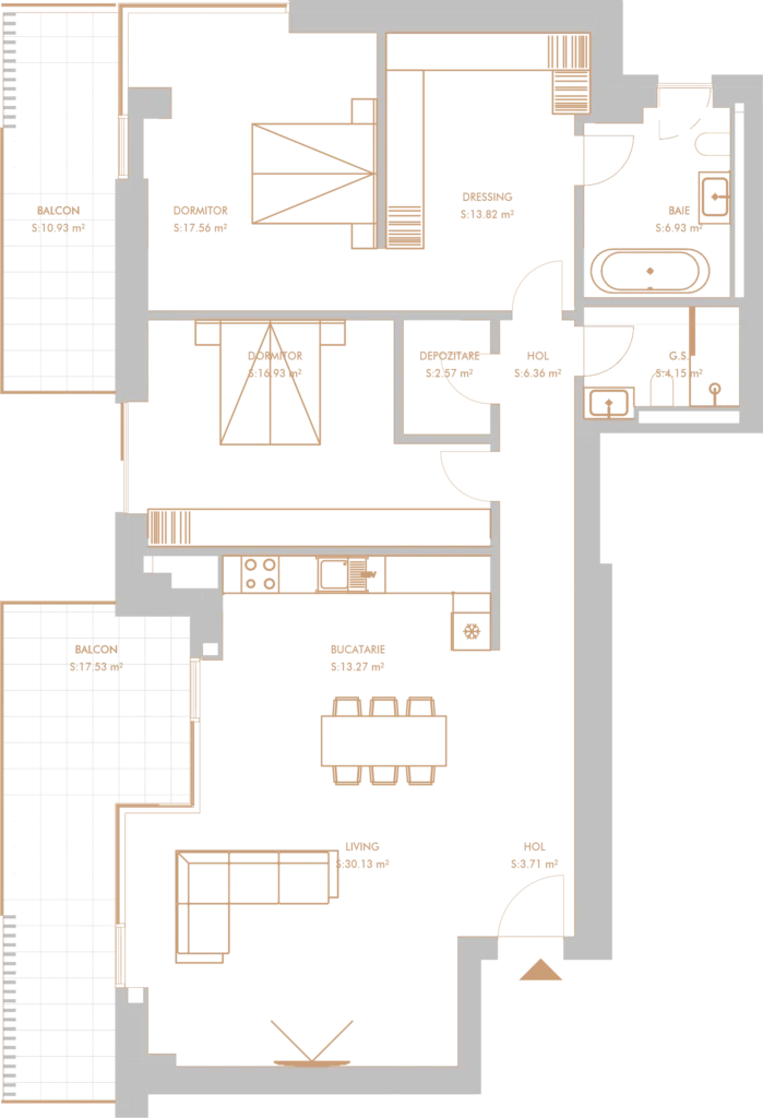 Apartamentele depășesc 110 m² utili și au tavane înalte, oferindu-ți libertatea să-ți transformi spațiul exact cum îți dorești.