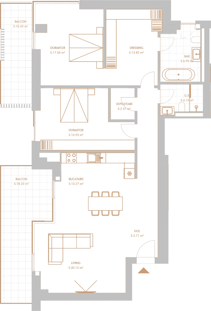 Apartamentele depășesc 110 m² utili și au tavane înalte, oferindu-ți libertatea să-ți transformi spațiul exact cum îți dorești.