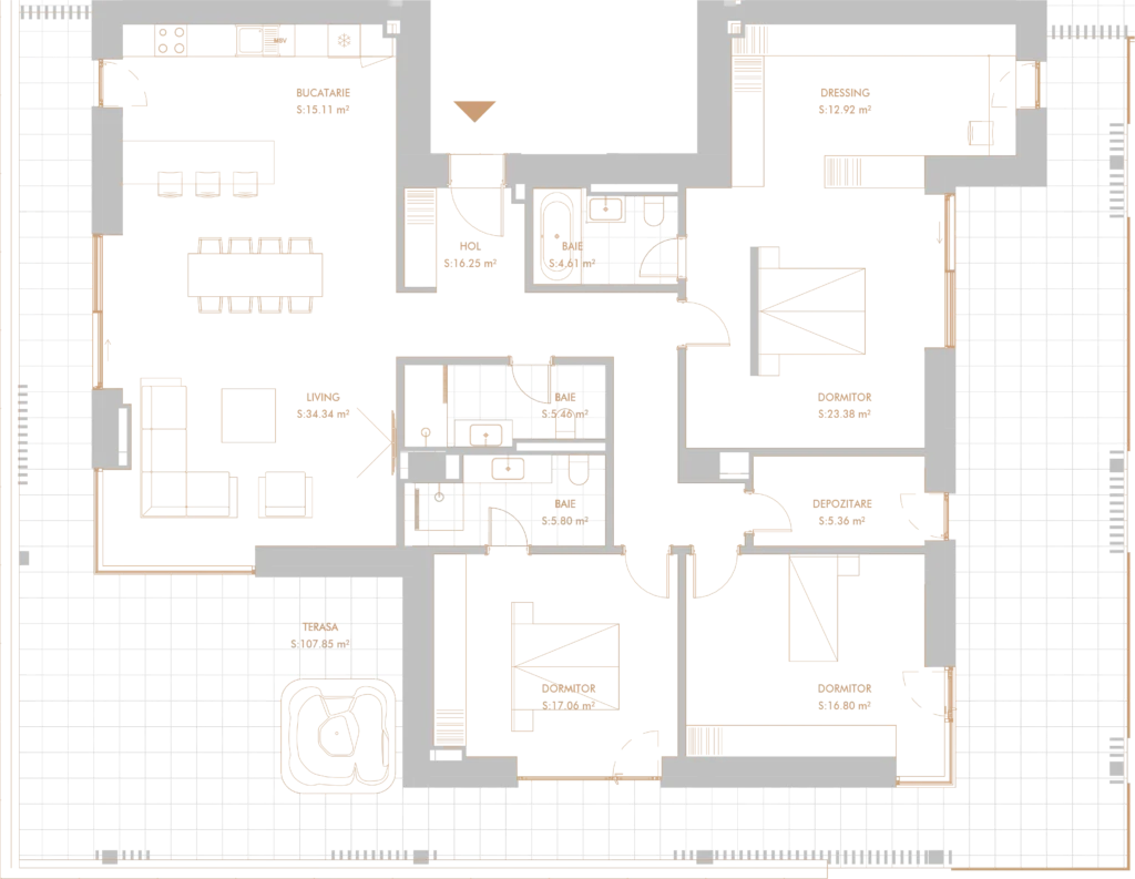 Apartamentele depășesc 110 m² utili și au tavane înalte, oferindu-ți libertatea să-ți transformi spațiul exact cum îți dorești.